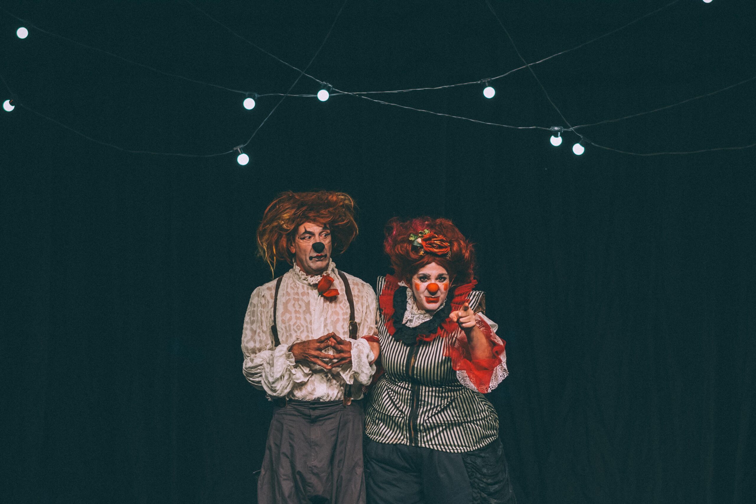Uma tragicomédia circense inspirada no teatro do absurdo e cinema mudo. Obra contemporânea que integra diversas linguagens.